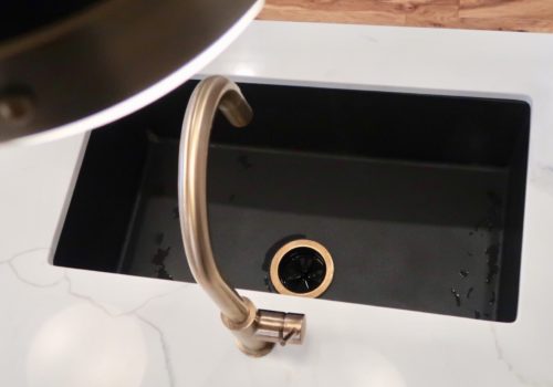 - The black sink was one of THE BEST decisions we made! We were unsure about a single bowl sink, and not being able to use abrasive materials to clean it was a concern, but it has been fantastic! It’s a breeze to clean and it always looks clean (even when it’s not)! This is awesome since one of my biggest pet peeves in past kitchens has been how yucky a dirty sink looks. Also, it’s large enough to submerge an entire cookie sheet… nuff said.