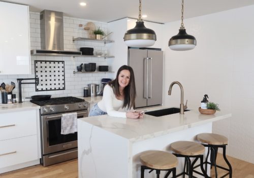 Thankfully some of the design features I love most, came with a fabulously low price tag! (Like our deep, single-bowl, rectangle, granite composite sink. Lovingly referred to as “the black sink”.) We opted for an IKEA kitchen, as opposed to custom cabinetry, but upgraded the overall look with some luxe door hardware.