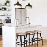 We hung the two wall-mounted fixtures above the sinks and directly over the oversized mirror. This creates tons of light where it’s most needed in a washroom and truly makes a statement all of its own.